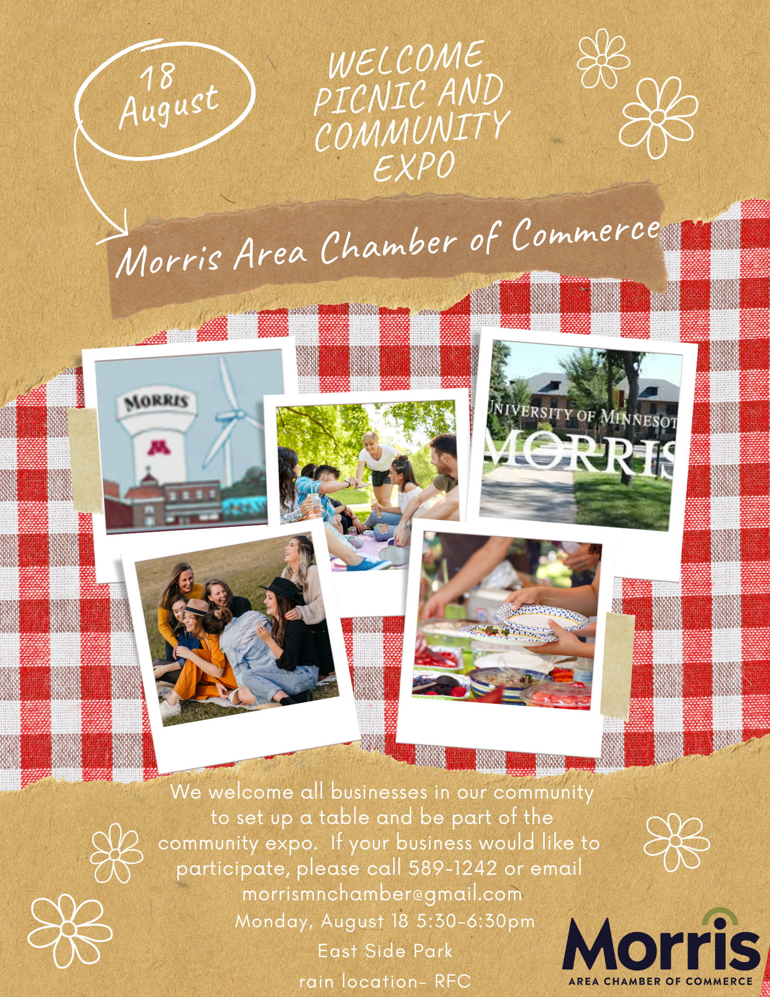 This is a fun picnic event for new students and staff at the University. Our business community can set up at the Community Expo and let them all know what Morris has to offer. Picnic is open to University Students. Business expo is open to Chamber members and non-members (free for members).