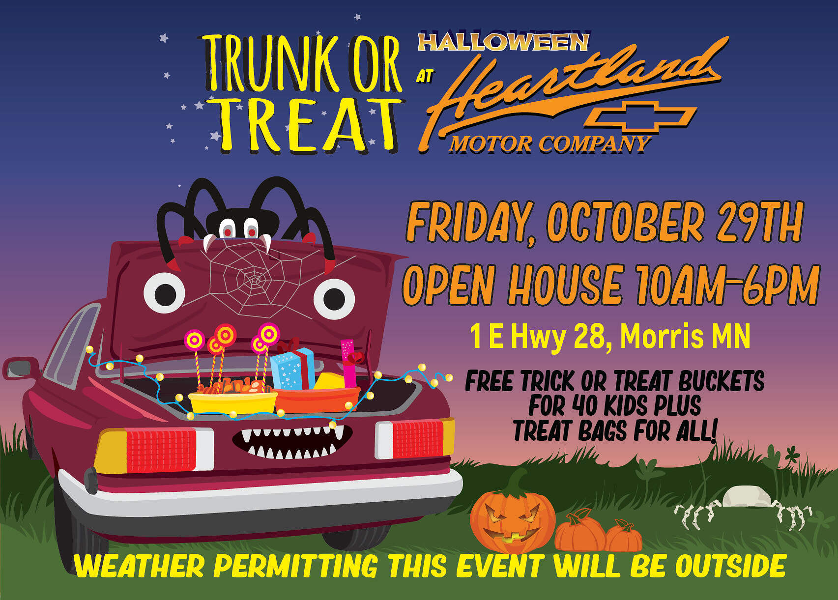 Open house! 40 kids get buckets, everyone gets a treat bag! Weather permitting this event will be outside
