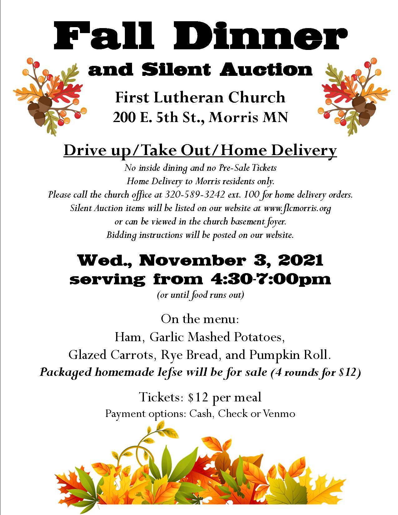Fall Dinner and Silent Auction at First Lutheran Church in Morris. Drive up, Take Out or Home Delivery (Morris residents only). Please call the church office at 320-589-3242 ext. 100 […]