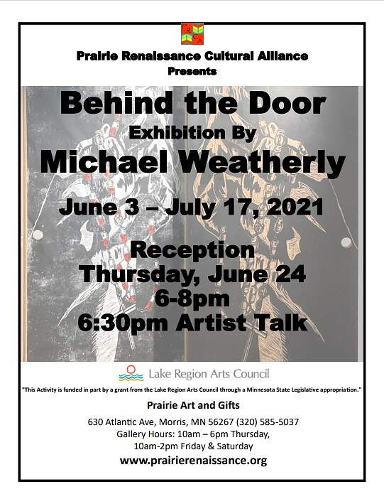 Michael Weatherly's art exhibition, Behind the Door, is now on display at the PRCA art gallery in downtown Morris! Exhibition dates: June 3-July 17, 2021 In-person reception: Thursday, June 24 from 6-8pm with artist talk at 6:30pm Free and open to the public