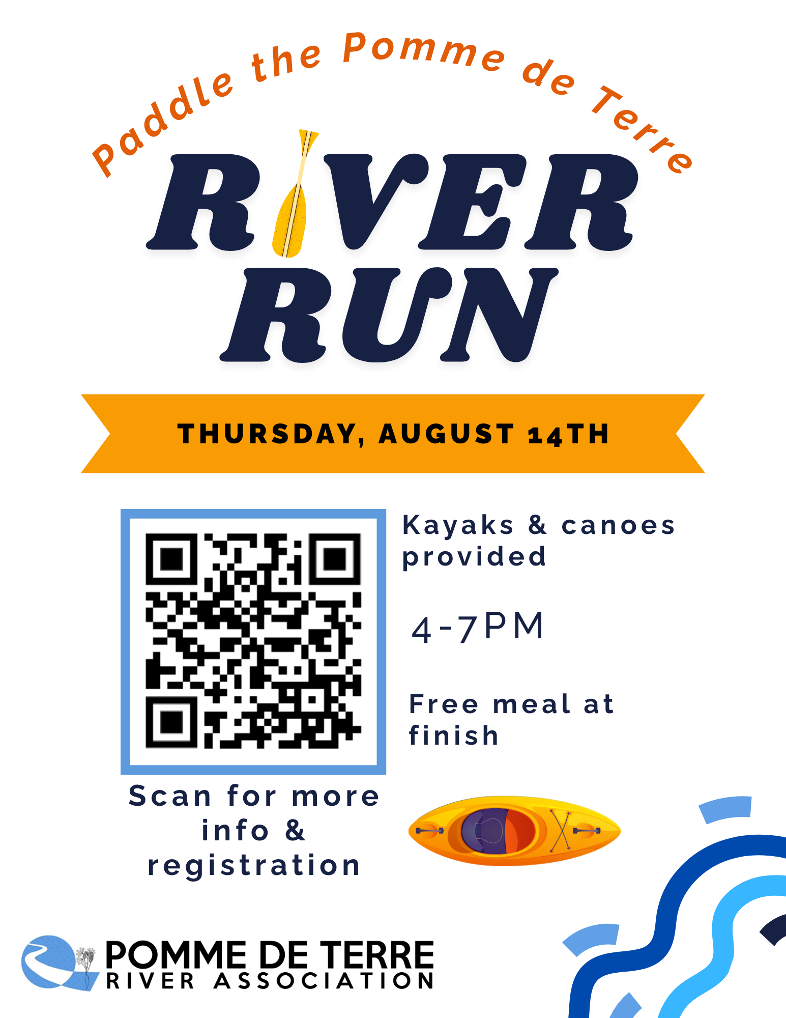 Free event aimed to get folks outside and familiar with the Pomme de Terre River. Boats and lifejackets will be provided, as well as a free meal at the conclusion of the paddle. Registration IS required. More info: https://www.pdtriver.org/2025-river-run/
