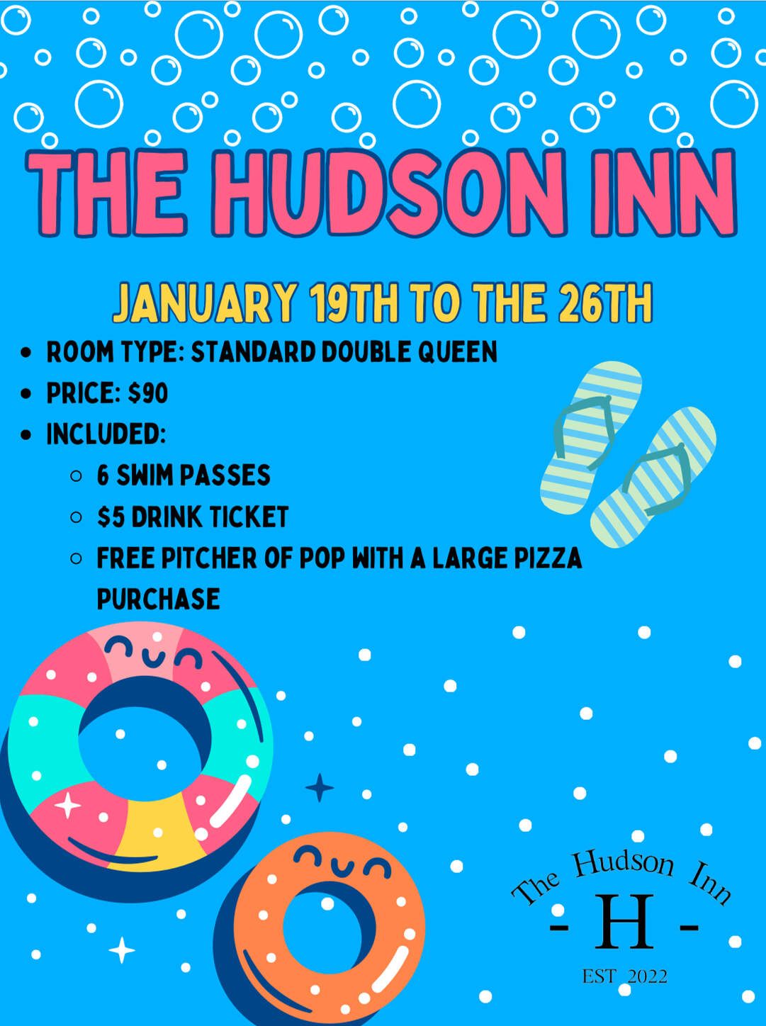 The Hudson Inn has a Mid Winter Special Book your room for $90 per night!! January 19th-26th. It include 6 swim passes $5 drink ticket Free pitcher of pop with […]